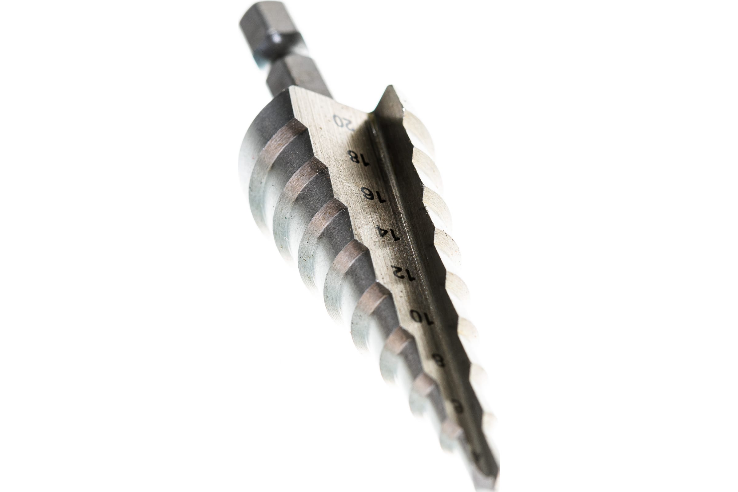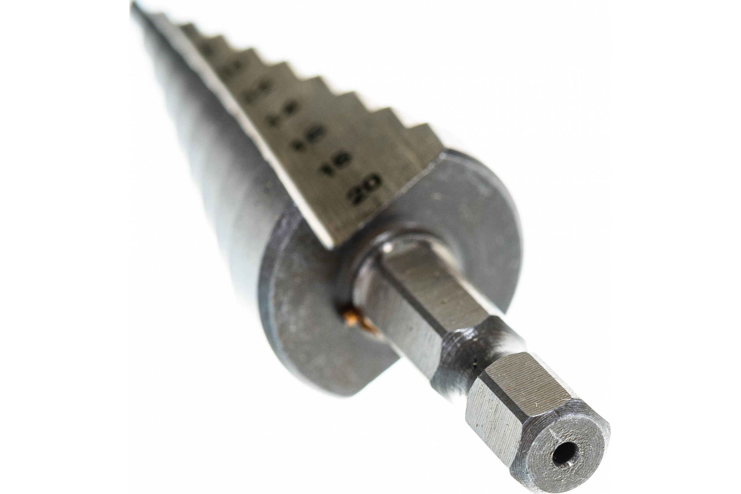 Количество ступеней — 9. Диаметры ступеней: 4 мм; 6 мм; 8 мм; 10 мм; 12 мм; 14 мм; 16 мм; 18 мм; 20 мм.