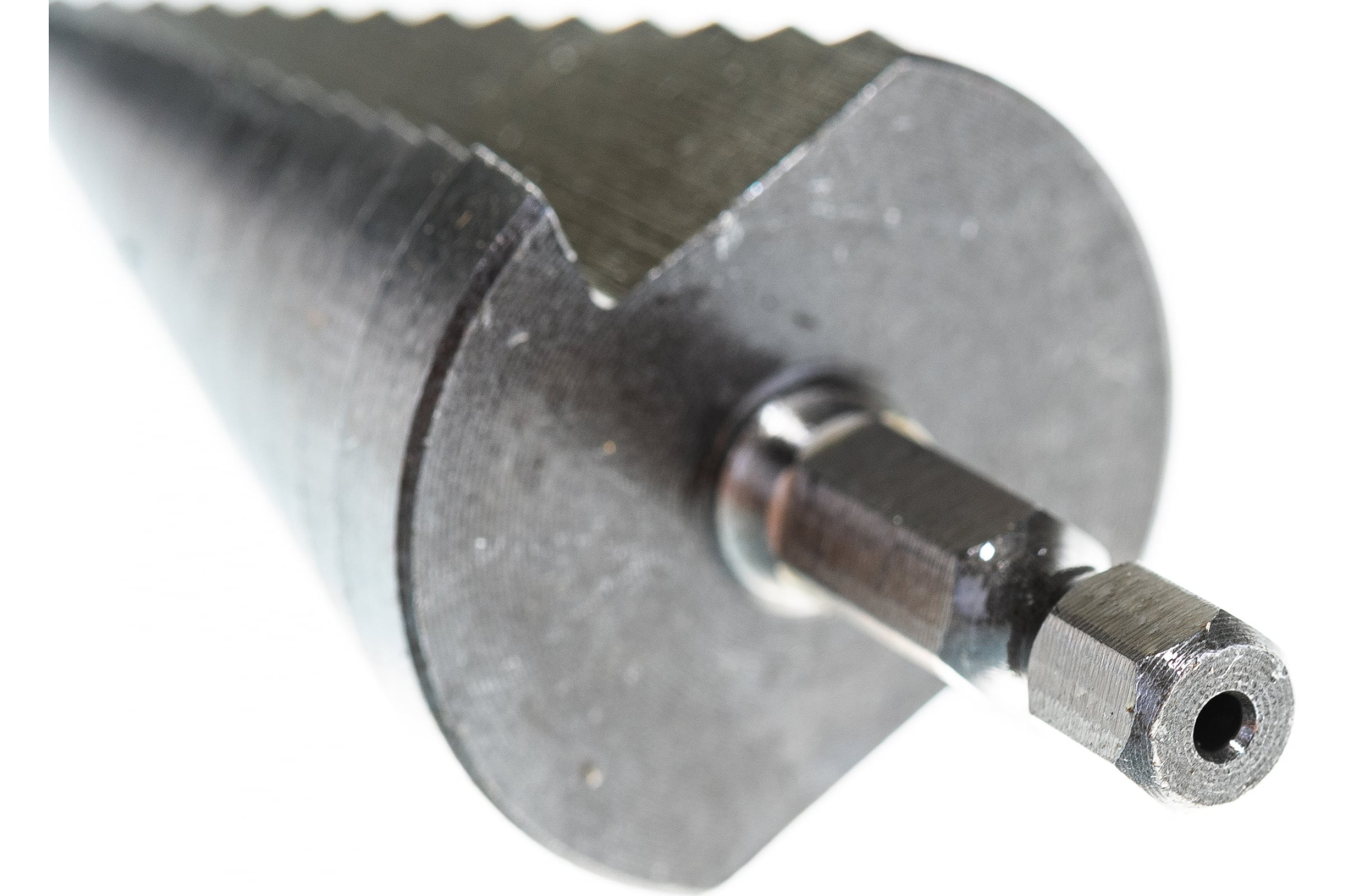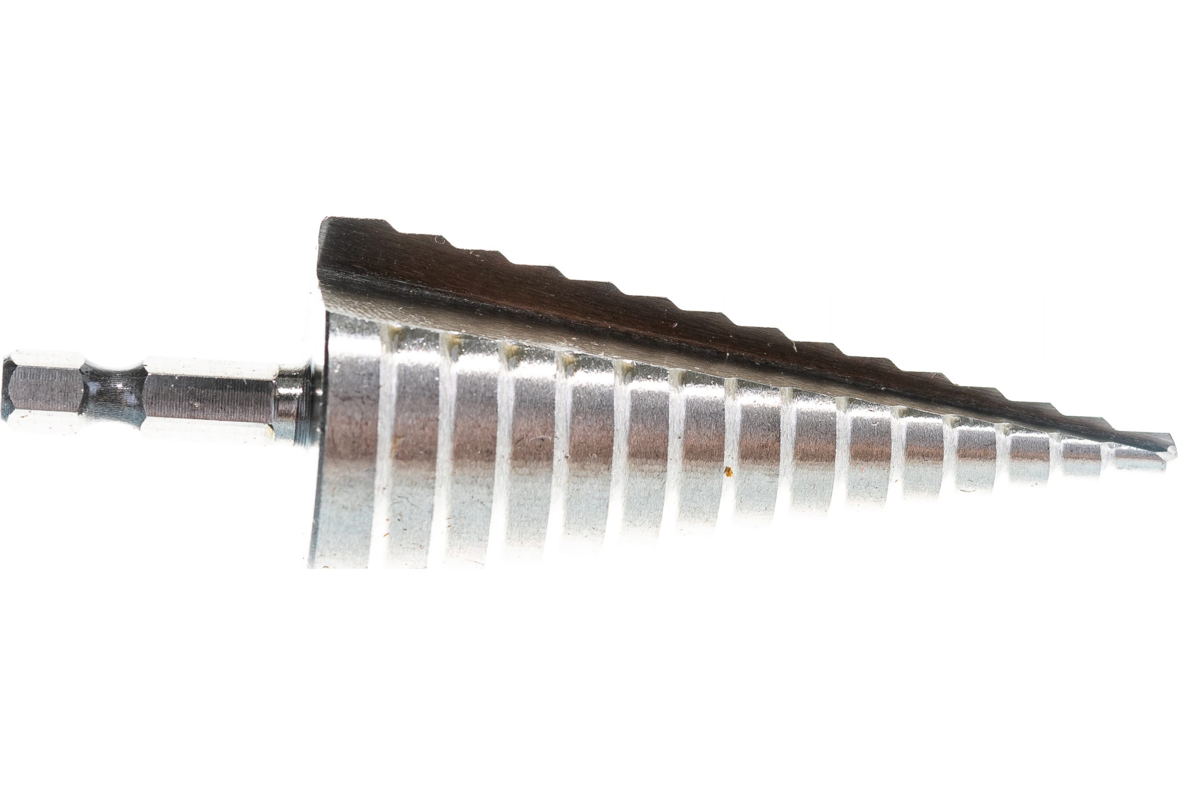 На каждой ступени есть маркировка фактического диаметра. Сверло изготовлено из быстрорежущей стали, имеют прямую спираль.