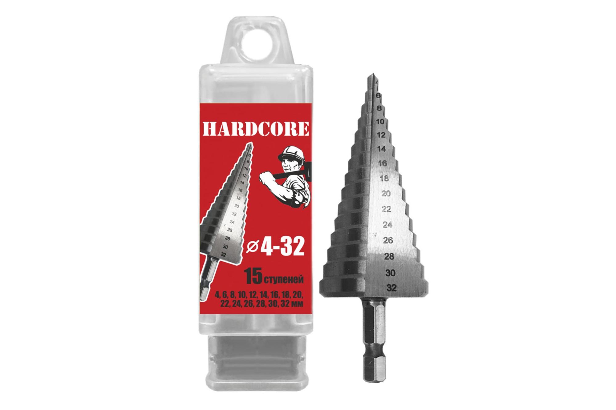 Количество ступеней — 15. Диаметры ступеней: 4 мм; 6 мм; 8 мм; 10 мм; 12 мм; 14 мм; 16 мм; 18 мм; 20 мм; 22 мм; 24 мм; 26 мм; 28 мм; 30 мм; 32 мм.