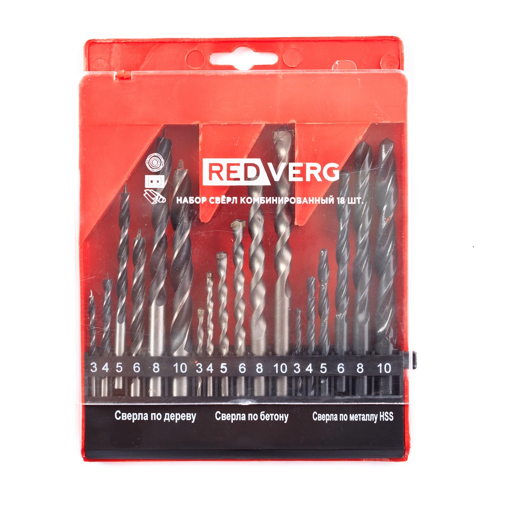Набор сверл по металлу/бетону/дереву RedVerg 3-4-5-6-8-10мм (18 шт)