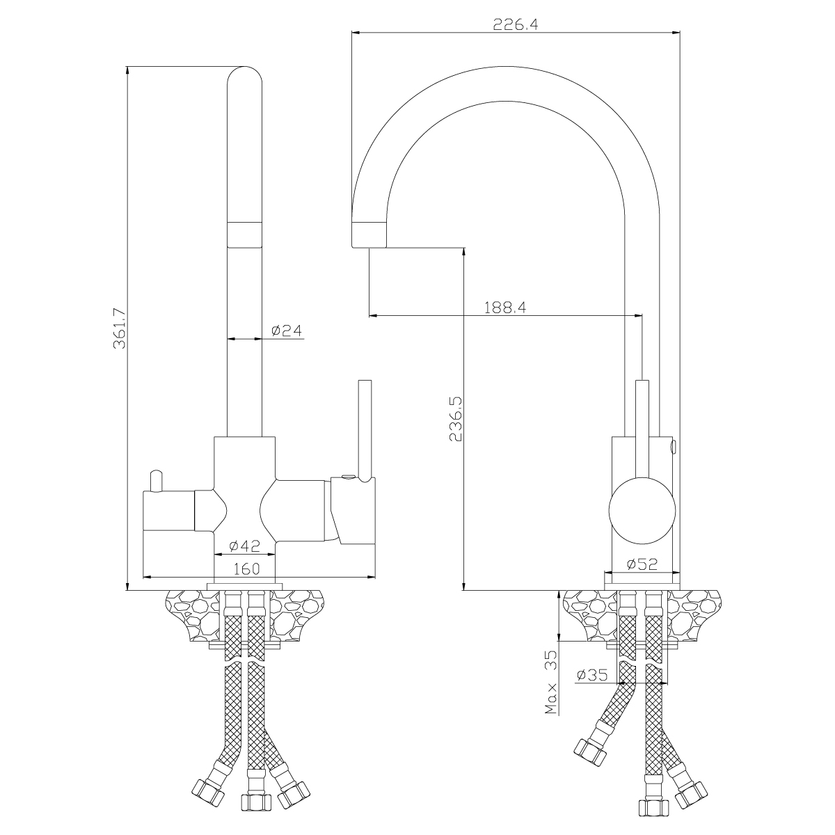 Гибкая подводка 35 см - 3 шт.