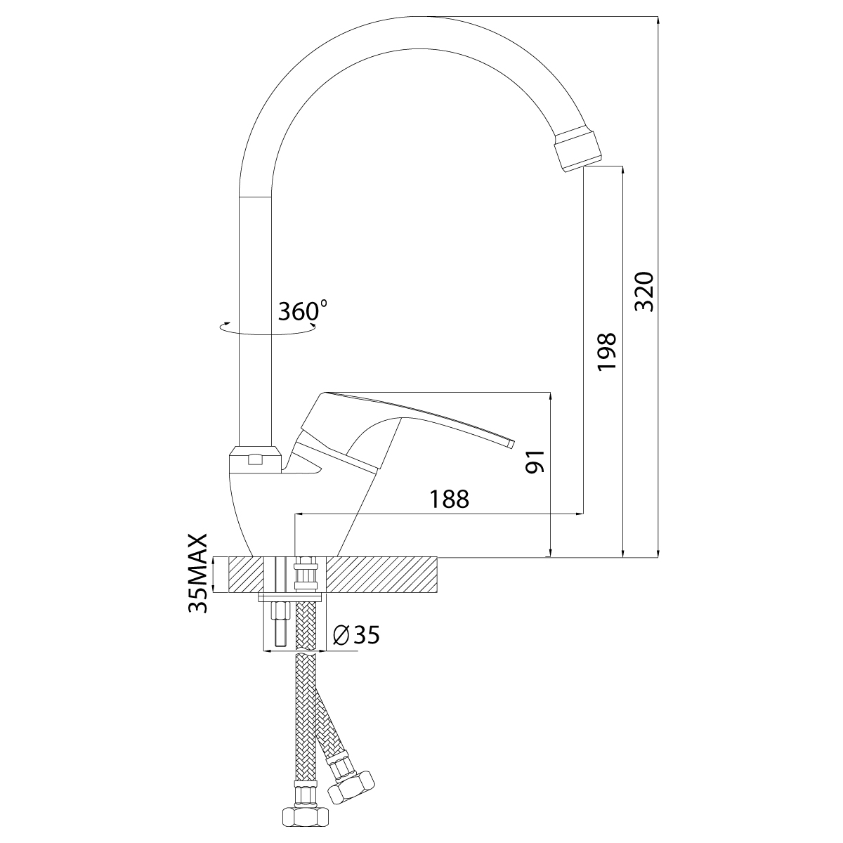 Поворотный восокорасположенный излив 180 мм