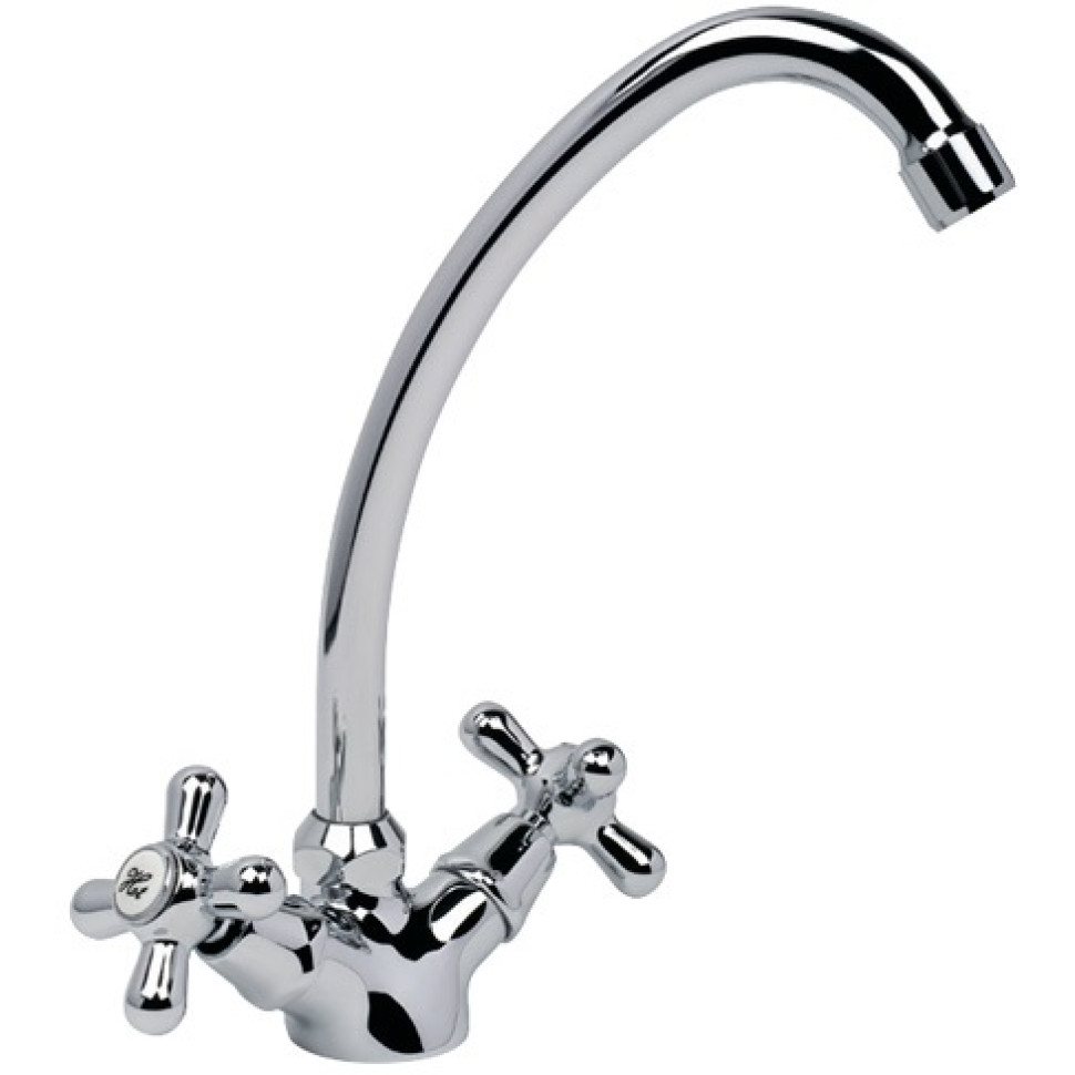 Смеситель для кухни набортный, хром, двухручковый, 1/2" кран букса - керамика, латунь