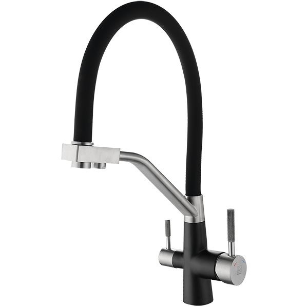 Смеситель д/кухни ARGO СОЛИД 35-11 наборт,под пит.воду, пластичный излив,черный, однорыч, нер