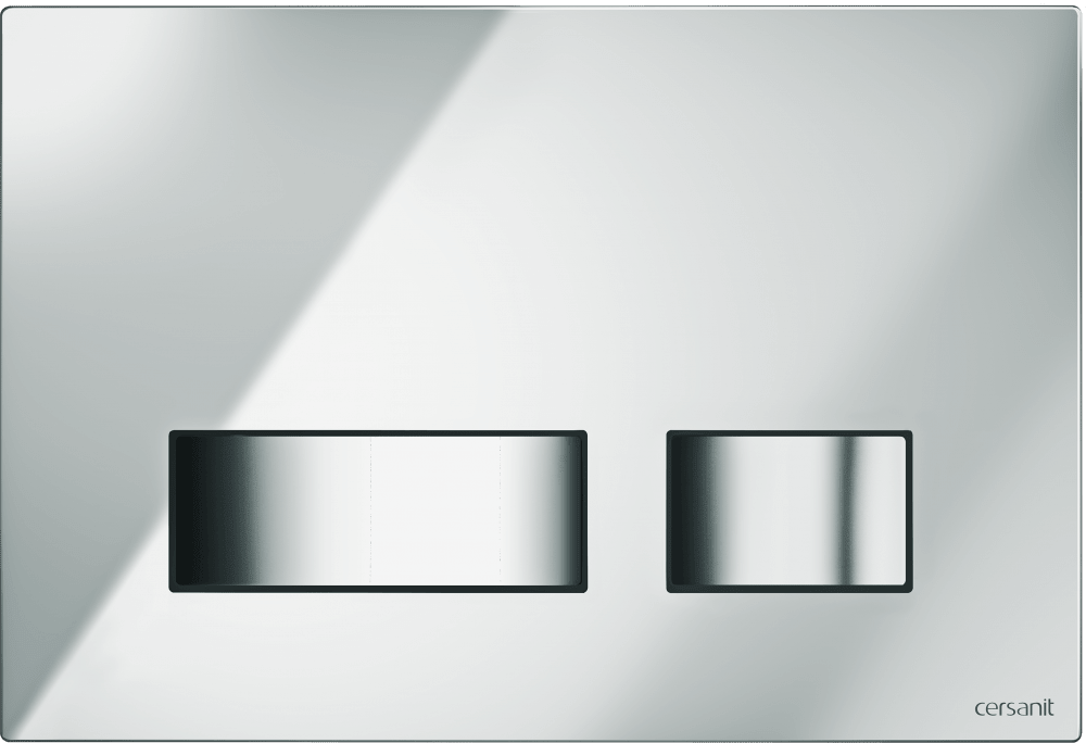 Кнопка изготовлена из пластика с глянцевым хромированным покрытием для двухуровневого механизма смыва.
