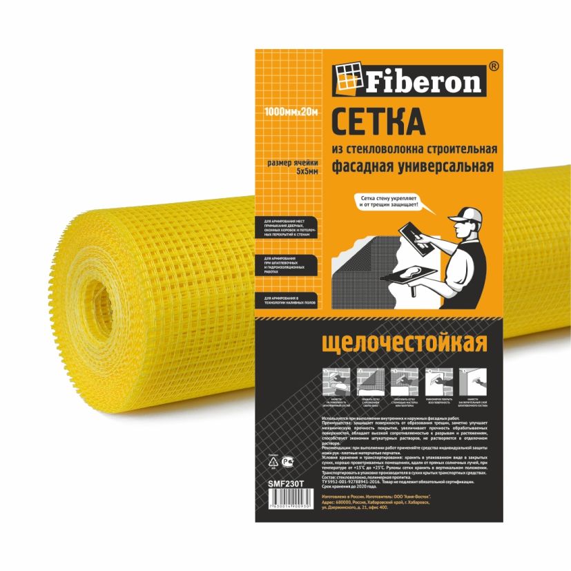 Сетка фасадная универсальная применяется: для внутренних и наружных работ, высокая прочность к разрыву и растяжениям. Для армирования при проведении фасадных работ, для армирования мест примыкания различных перекрытий к стенам, для армирования при шпатлевочных и гидроизоляционных работах. Сетка щелочестойкая, не растворяется в отделочном растворе, долговечная, защищает поверхность от образования трещин. Размер ячейки 5 x 5 мм, цвет желтый, длина 20м