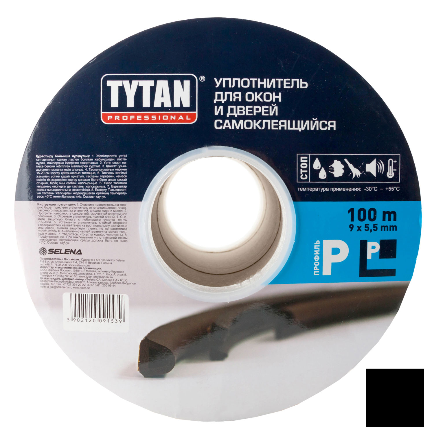 Уплотнитель-P100-TYTAN-100м-9мм-5,5мм-черный