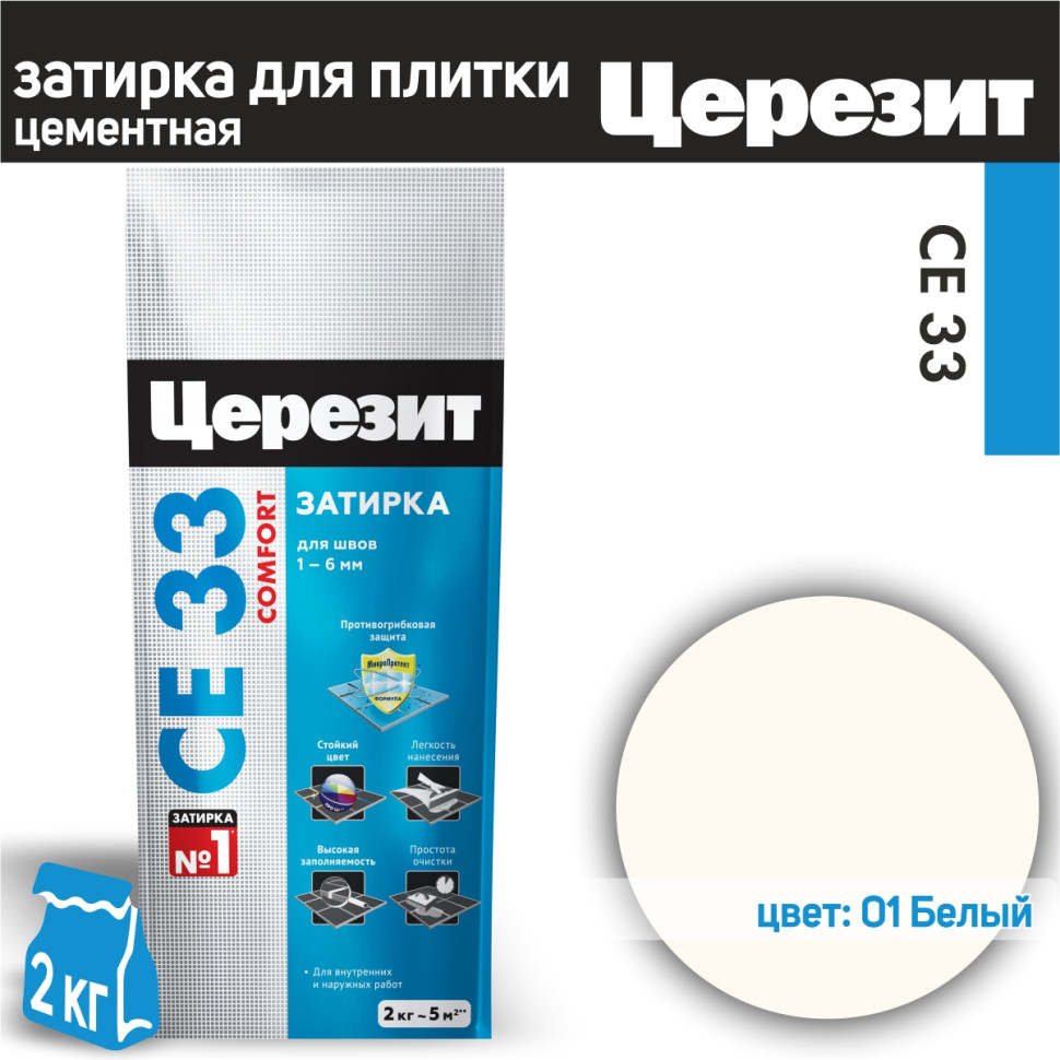 —Затирка д/швов Церезит CE33 №01 2кг белая
