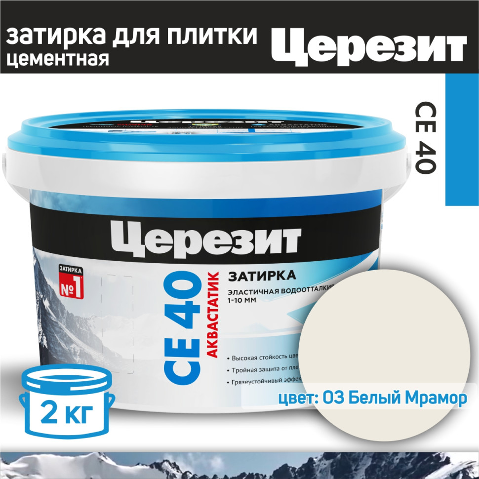 Затирка CE 40 предназначена для заполнения швов керамических, каменных (в том числе мраморных) и стеклянных облицовок на полах и стенах внутри и снаружи зданий, при ширине шва до 10 мм.