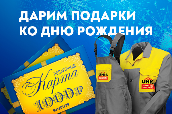 В честь своего Дня рождения Мегастрой разыгрывает подарочные карты номиналом 1000 руб. и подарки от наших партнеров UNIS, фирменные комбинезоны!
