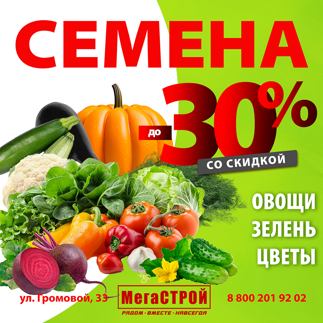 Семена лучших сортов овощей и зелени со скидкой до 30% в МегаСТРОЙ!